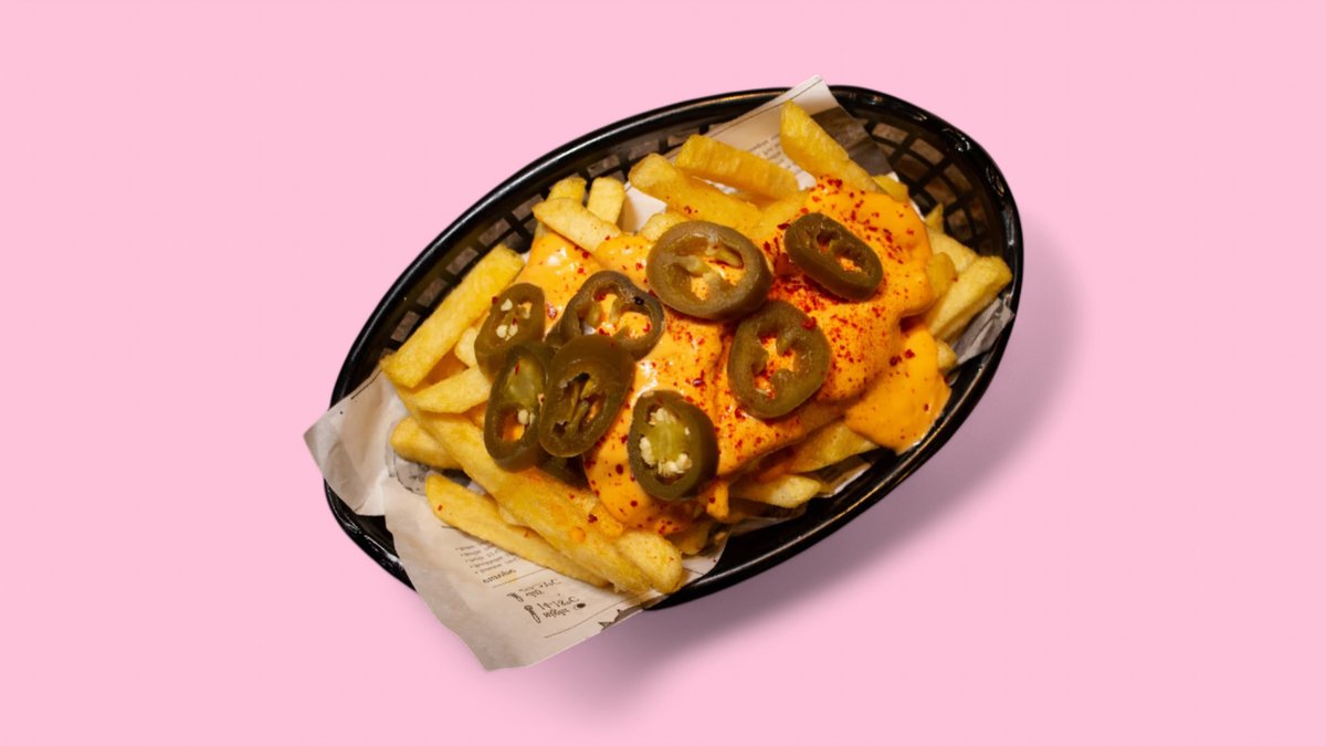 scharf mit Cheddar, Jalapeños, frischem Blattsalat und scharfer Soße
