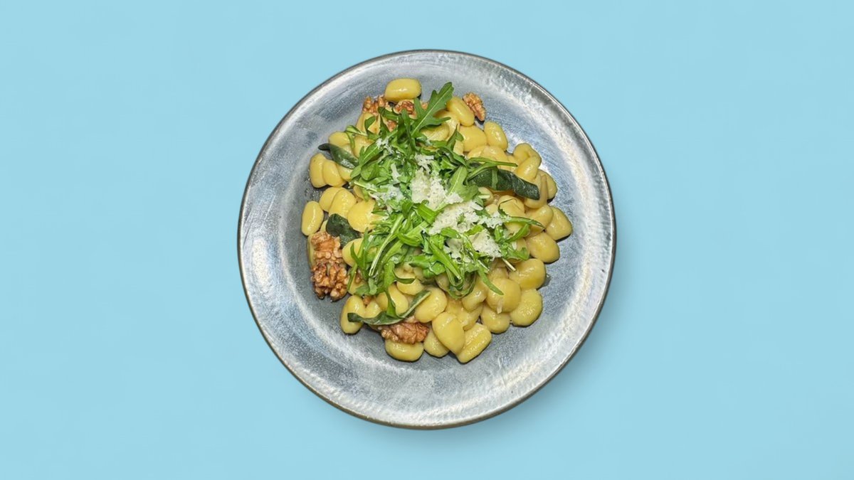 in einer aromatischen Salbei-ButtersoĂźe, verfeinert mit knackigen WalnĂĽssen, frisch geriebenem Parmesan und frischem Rucola