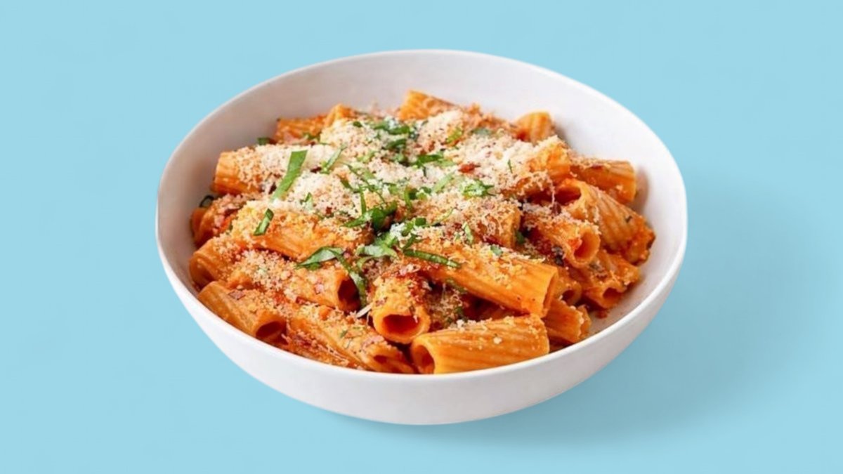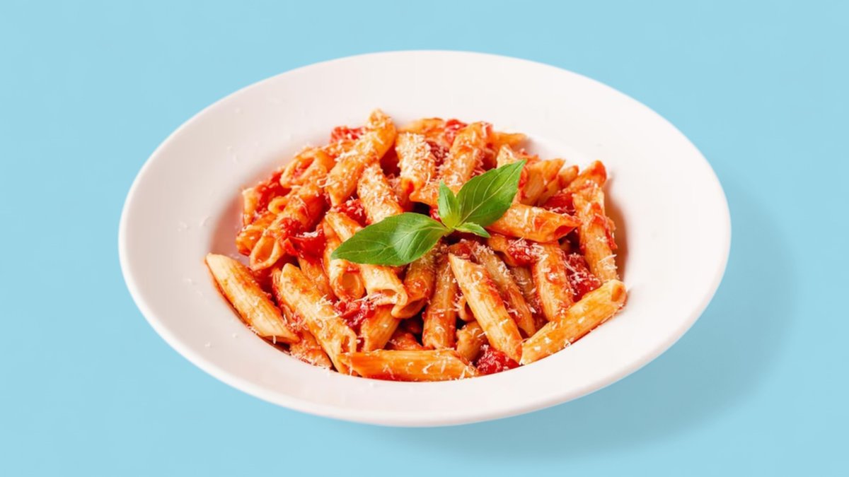 Pastasorte deiner Wahl in einer pikanten TomatensoĂźe mit frischem Chili, Knoblauch und Basilikum, vollendet mit frisch geriebenem Parmesan