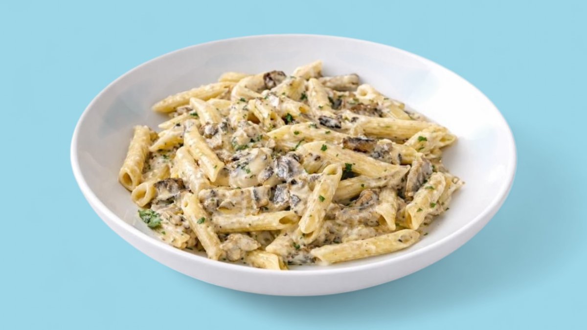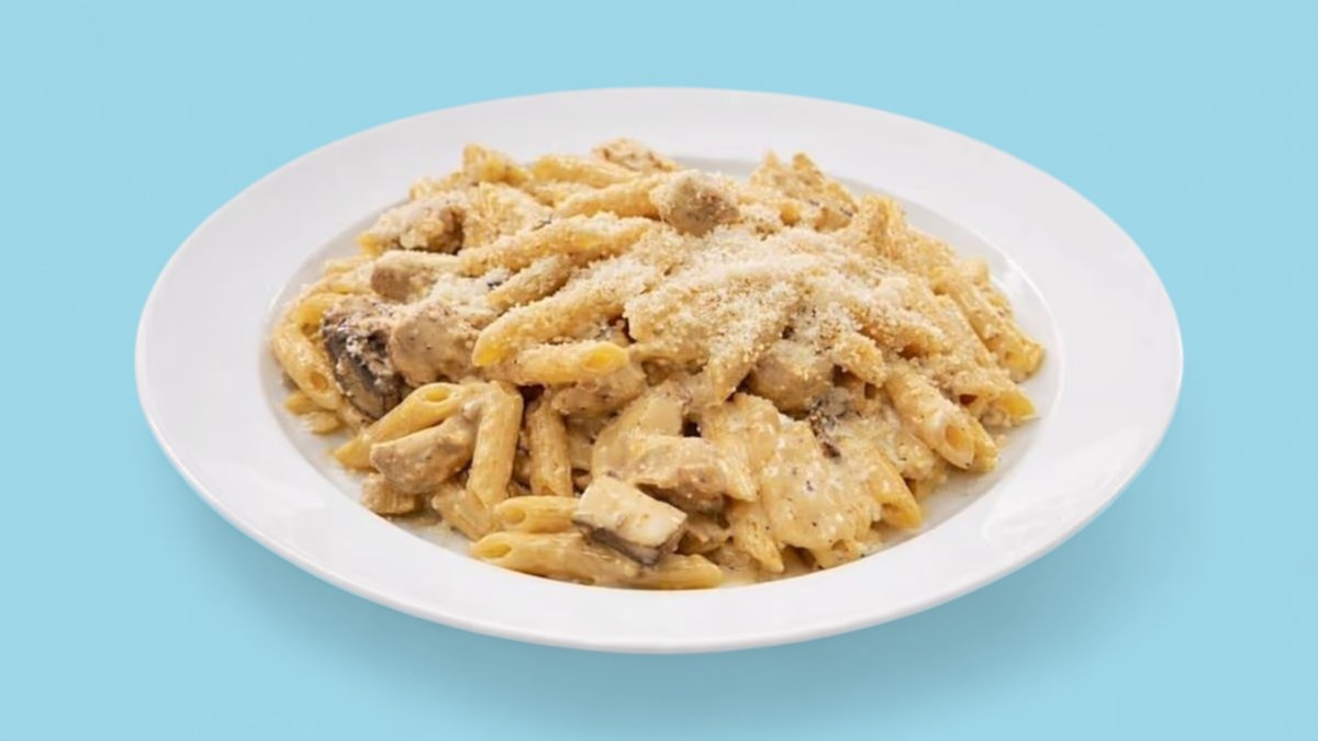 Pastasorte deiner Wahl mit zart gebratenem HĂĽhnerfleisch in einer cremigen Steinpilzen-RahmsoĂźe, verfeinert mit frisch geriebenem Parmesan