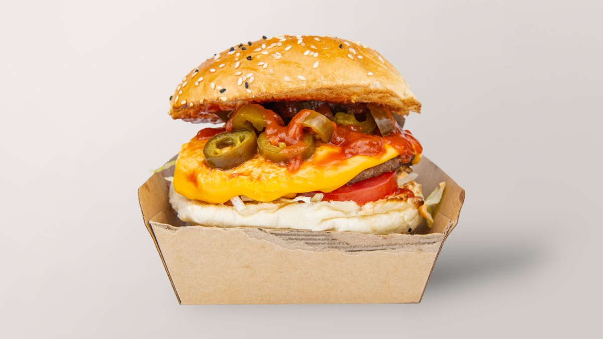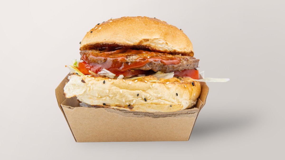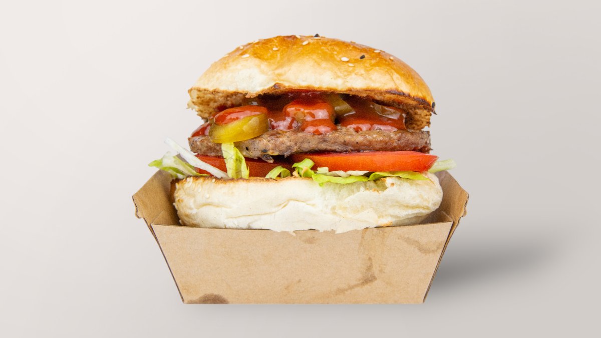 alle Burger werden mit hausgemachter SoĂźe, Salat, Tomaten, Zwiebeln und GewĂĽrzgurken zubereitet