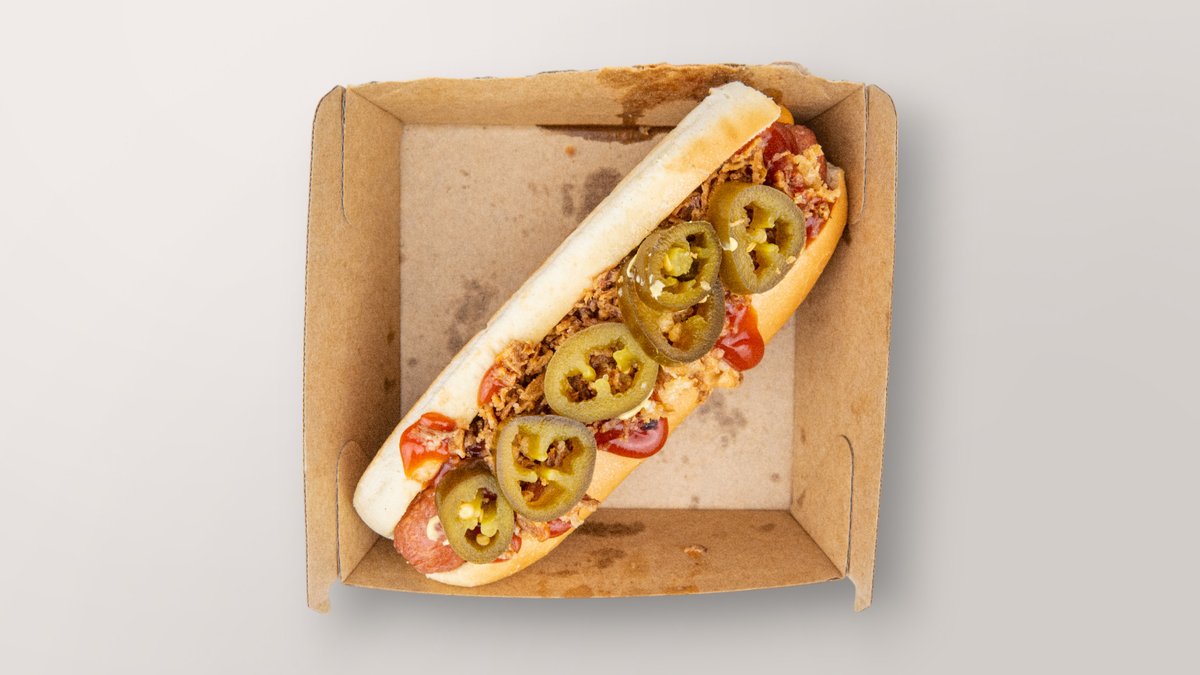 mit Geflügelwurst, Chili-Käsesoße und Jalapeños