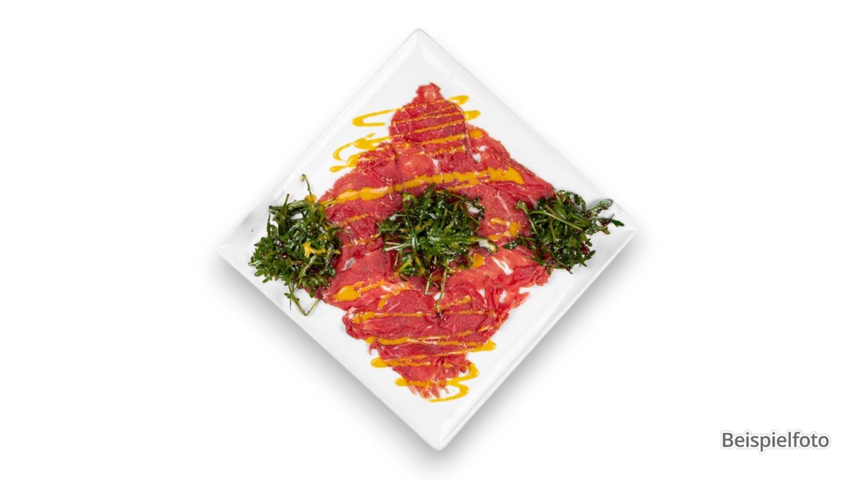 Schmand, Mozzarella, Aubergine, Zucchini, Paprika, Kirschtomaten, Oliven, getrocknete Tomaten, Rucola und Feta