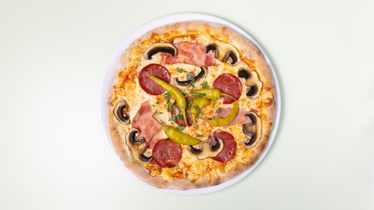 mit türkische Knoblauchwurst (Sucuk, Tomatenscheiben, Zwiebeln und Peperoni)