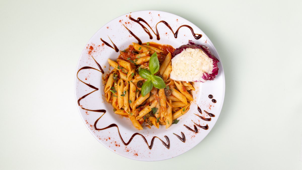 scharf mit Kapern, Oliven, Zwiebeln und Chili in Tomatensoße
