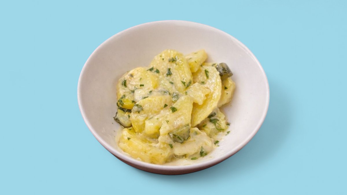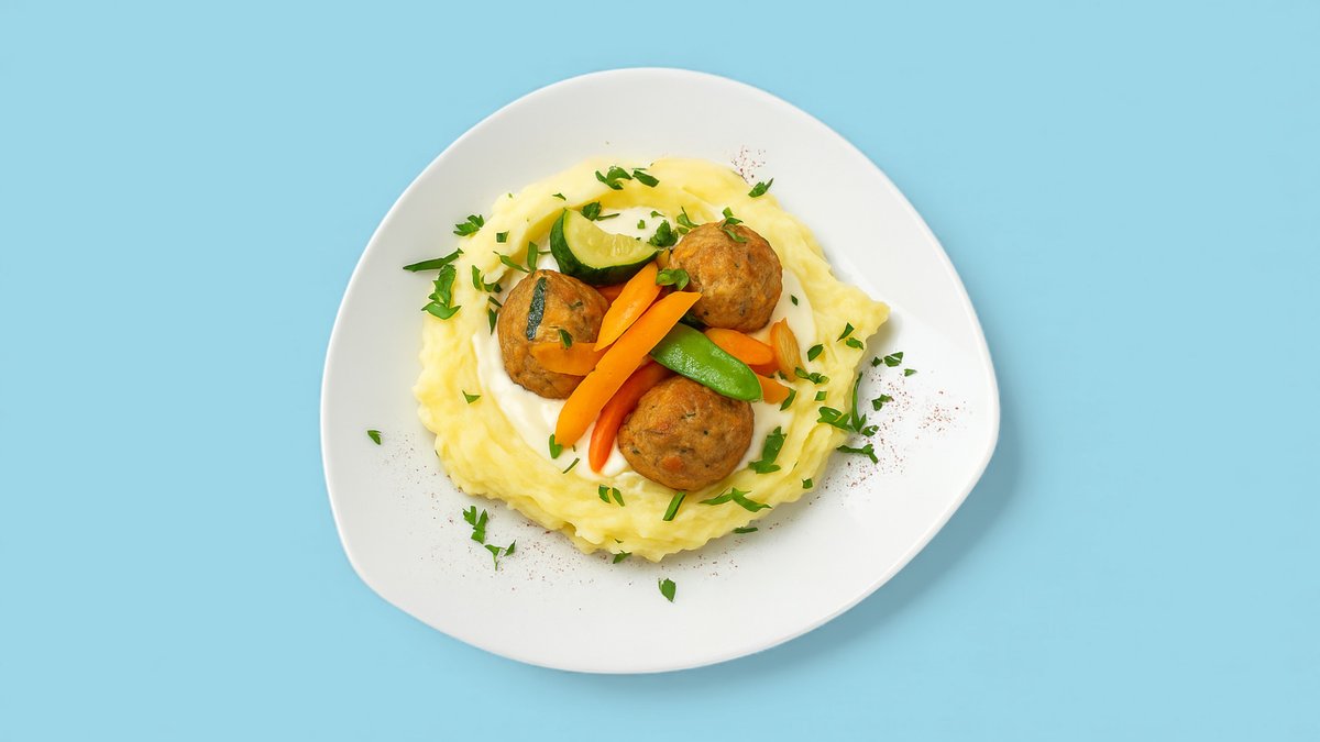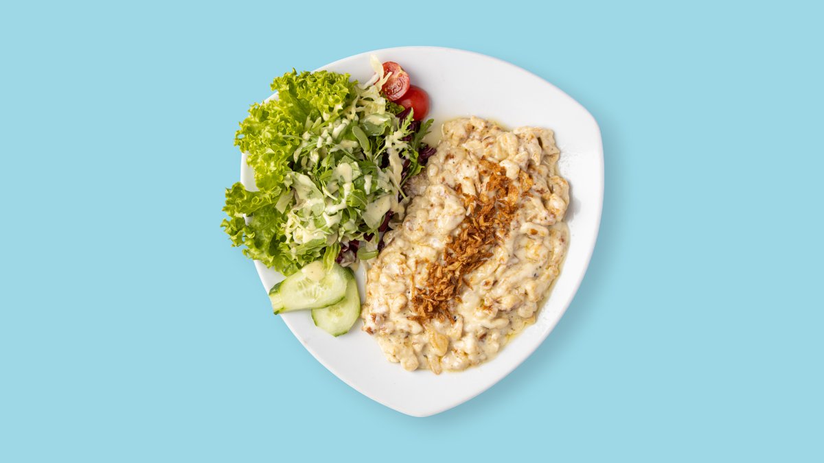 feines Gemüse in klassischer Kapernsauce, harmonisch abgeschmeckt und serviert mit cremigem Kartoffelpüree und Rote-Bete-Salat