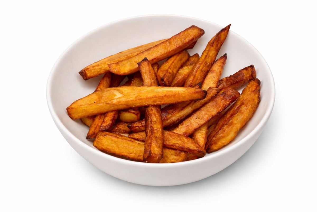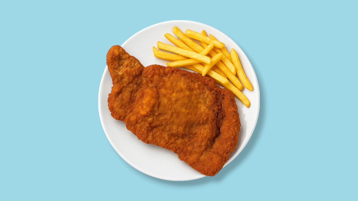 paniert gebratene Hähnchenbrust-Escalope mit Pommes frites