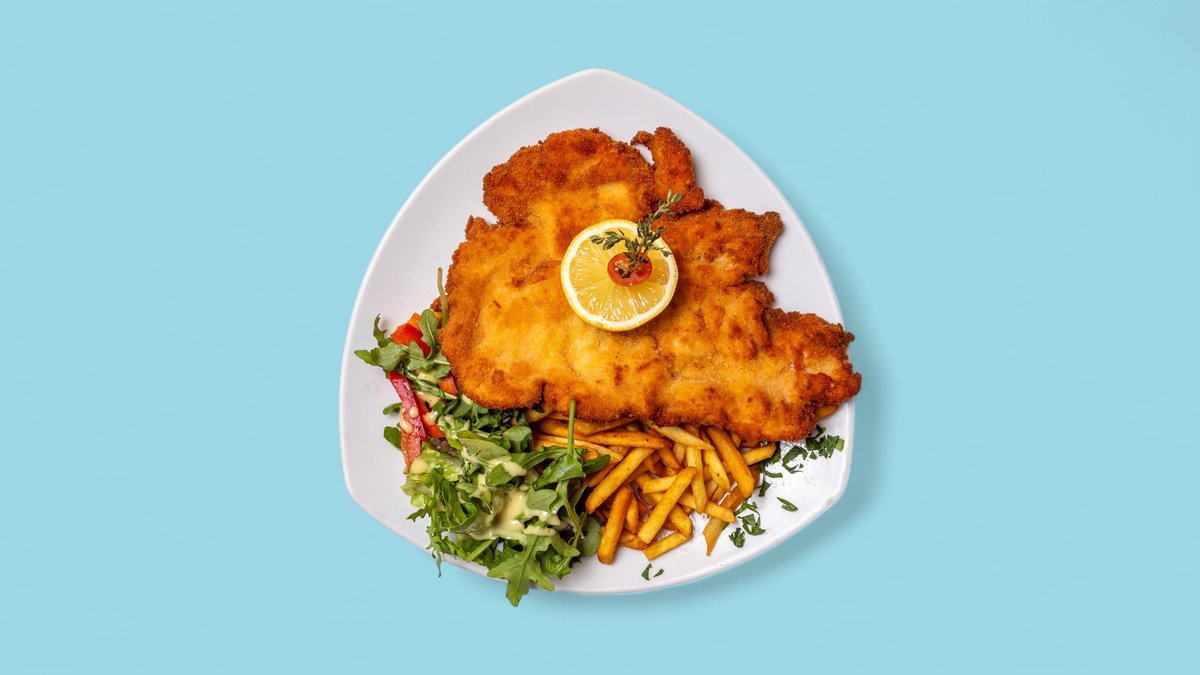 paniert, knusprig in der Pfanne gebraten mit einer Beilage deiner Wahl