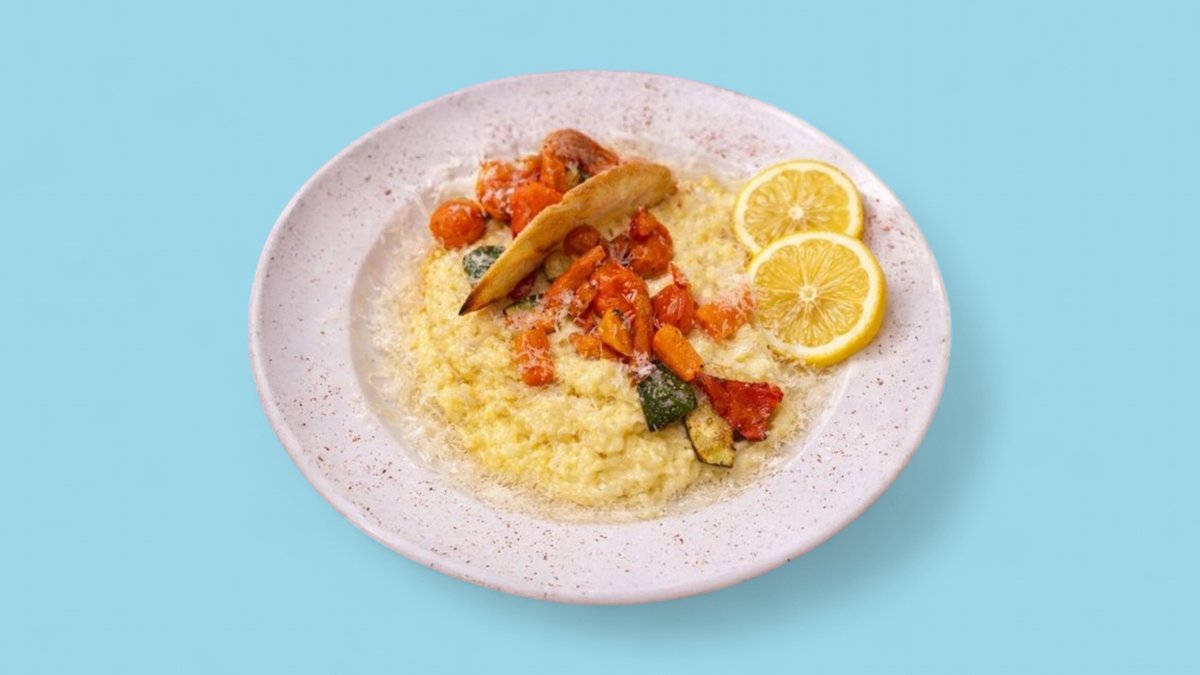 Zitronen-Safran-Risotto, mit Käsekrokant