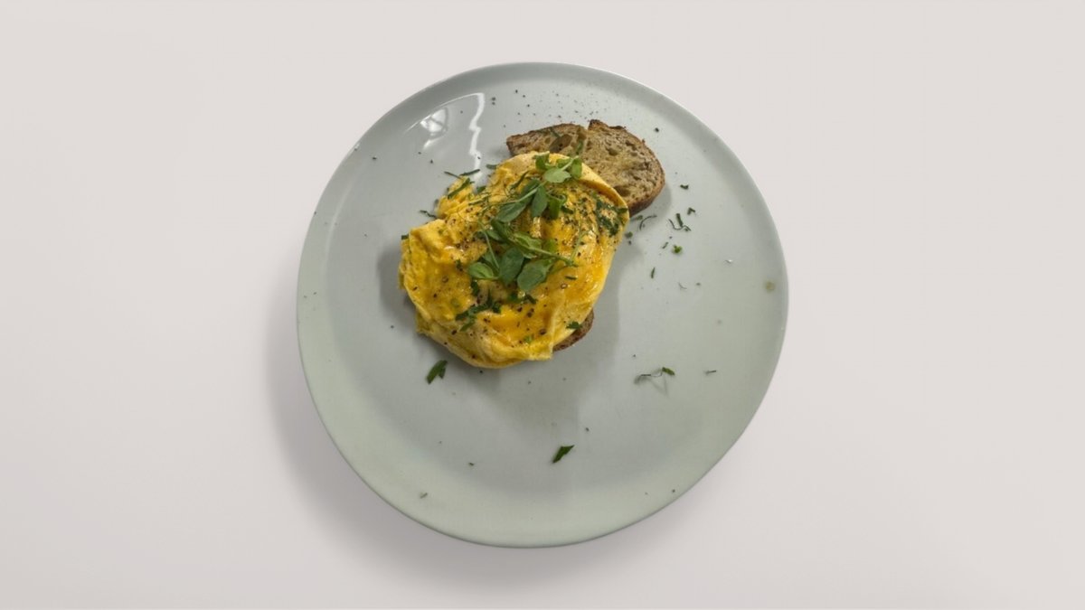 aus 3 Eier, serviert mit 2 Toast Scheiben und Butter