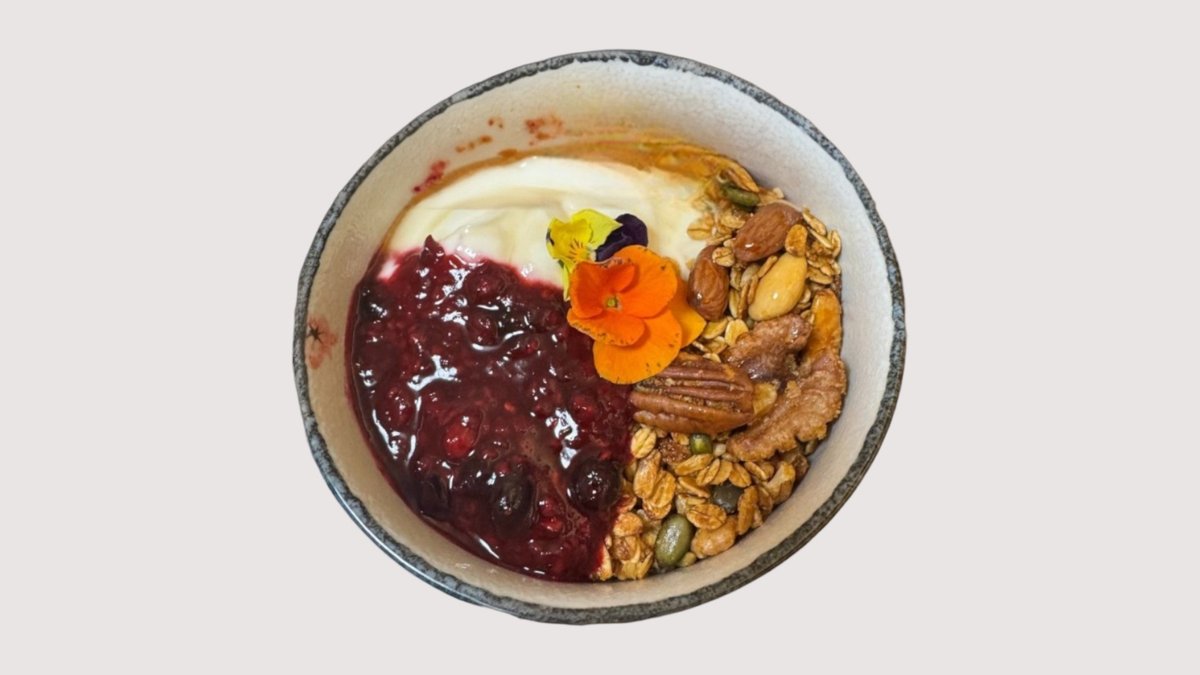 mit hausgemachter Granola mit Beeren und Greek Joghurt