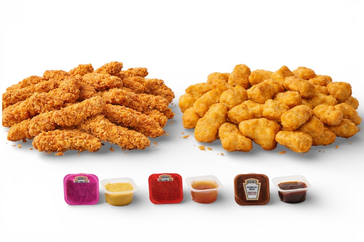 20 Nuggets & 20 Chili Wings 40er Mix mit bis zu 3 Soßen gratis: Süß-Sauer-Soße (25g), Heinz BBQ Dip (25g) oder Heinz Curry Mango Dip (25g)