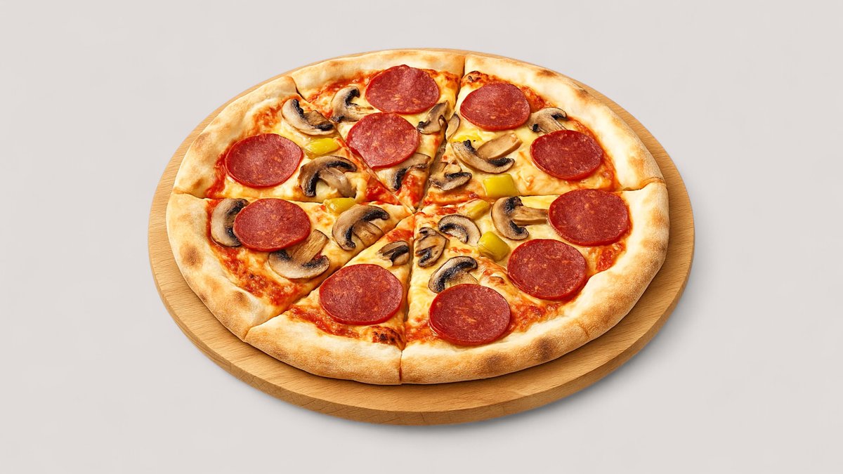 mit frischen Champignons, Zucchini, Zwiebeln, getrockneten Tomaten, Artischocken, Kapern und Oliven
