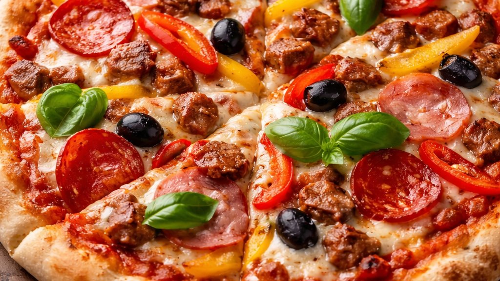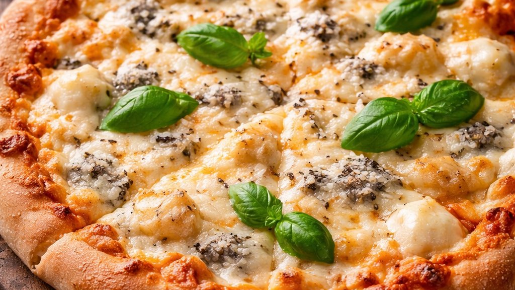 mit Sahnesoße, Brokkoli, Hähnchen, Parmesan, Tomatensoße, Zwiebeln, Spinat und Champignons