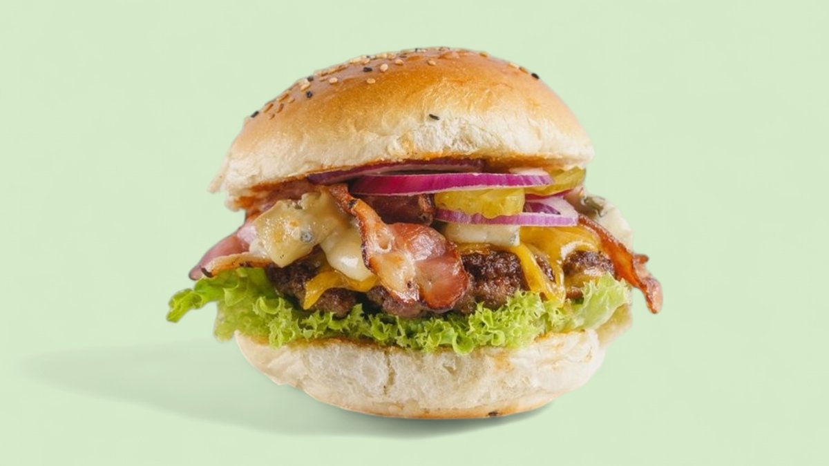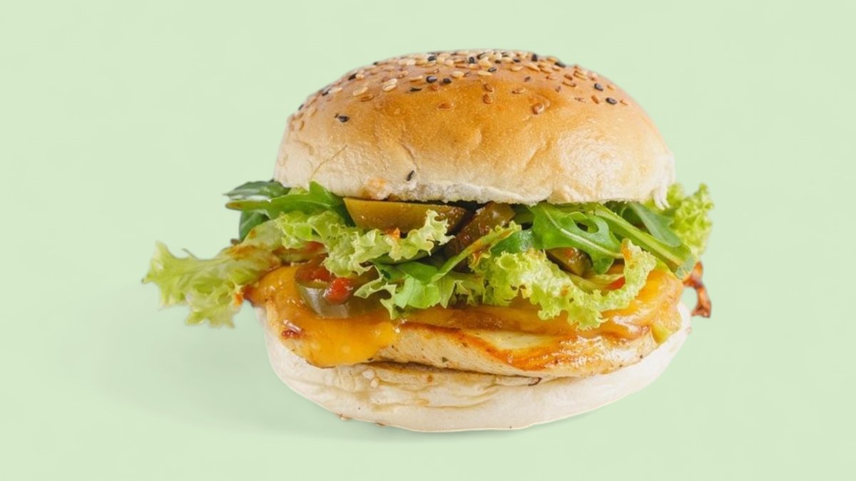 alle Burger werden mit Rindfleisch, Gurken, Tomaten, Zwiebeln und Salat zubereitet („Crunchy Chicken Burger”, „Chicken Burger”, „Hot Chicken Burger” und „Avocado Chicken Burger” werden mit Hähnchenbrustfilet zubereitet)