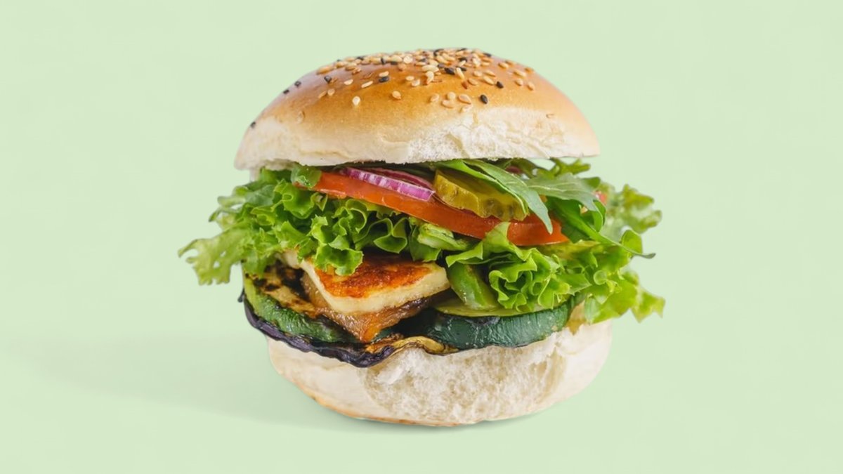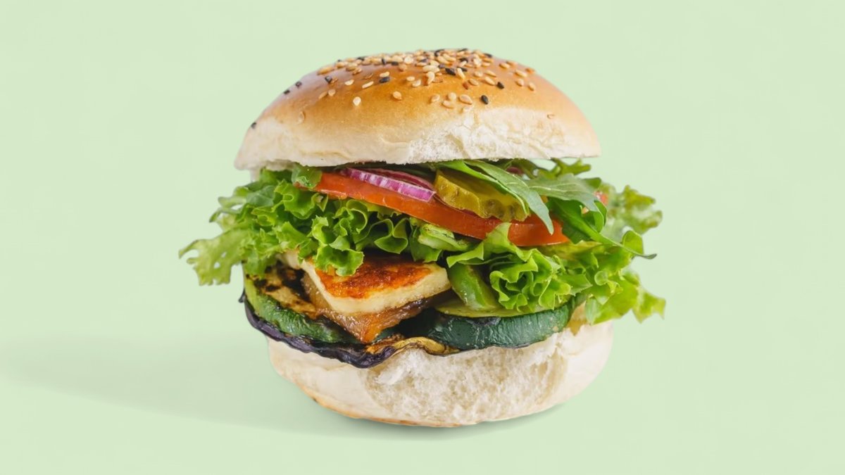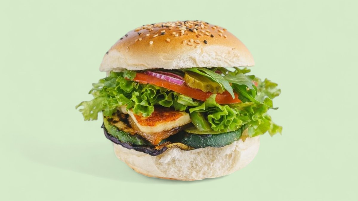 mit gegrillter Paprika und gegrilltem Halloumi, Rucola und Avocadocreme