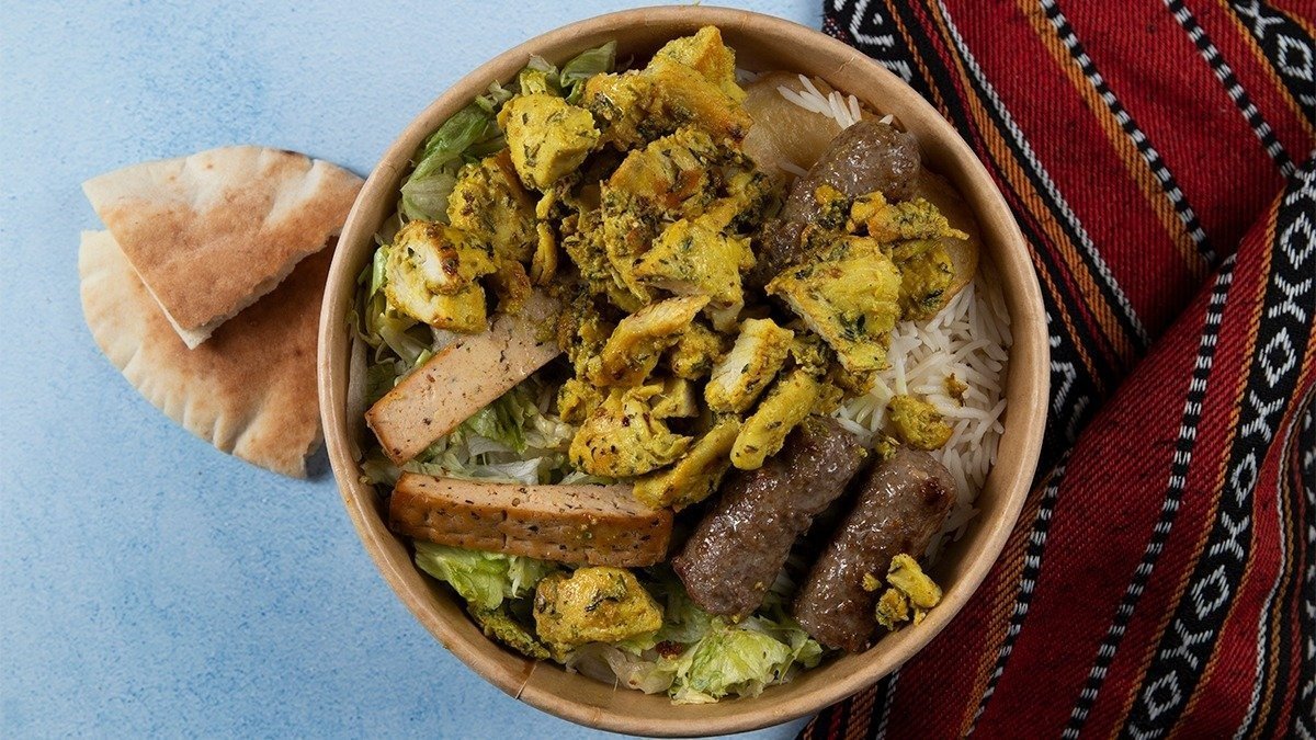 alle Bowls werden mit Reis, Salat und einer Soße deiner Wahl serviert
