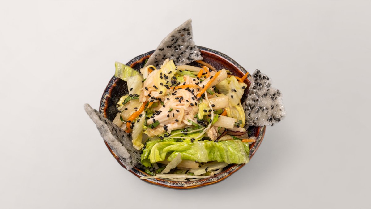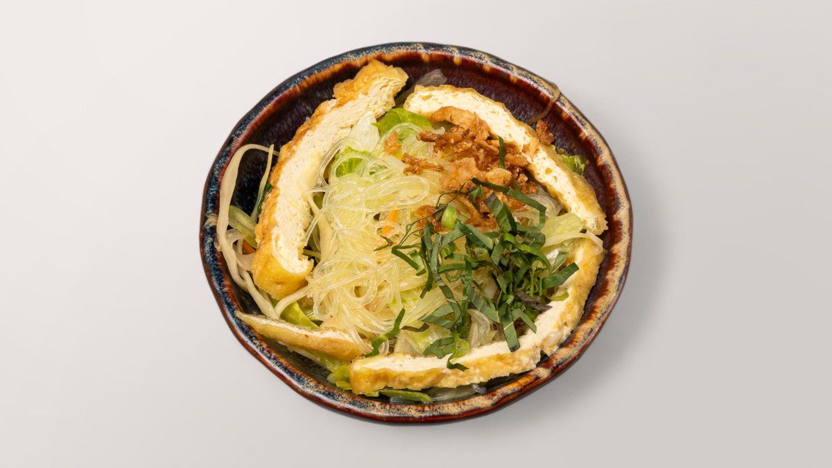 leicht scharf, Salat aus frischem Weißkohl, Tofu, Sellerie und Glasnudeln, verfeinert mit vietnamesischen Kräutern und mit Erdnüssen garniert