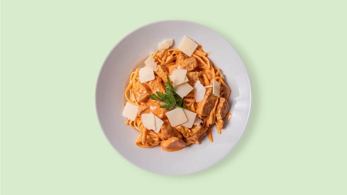 mit Putenstreifen und Tomaten-SahnesoĂźe