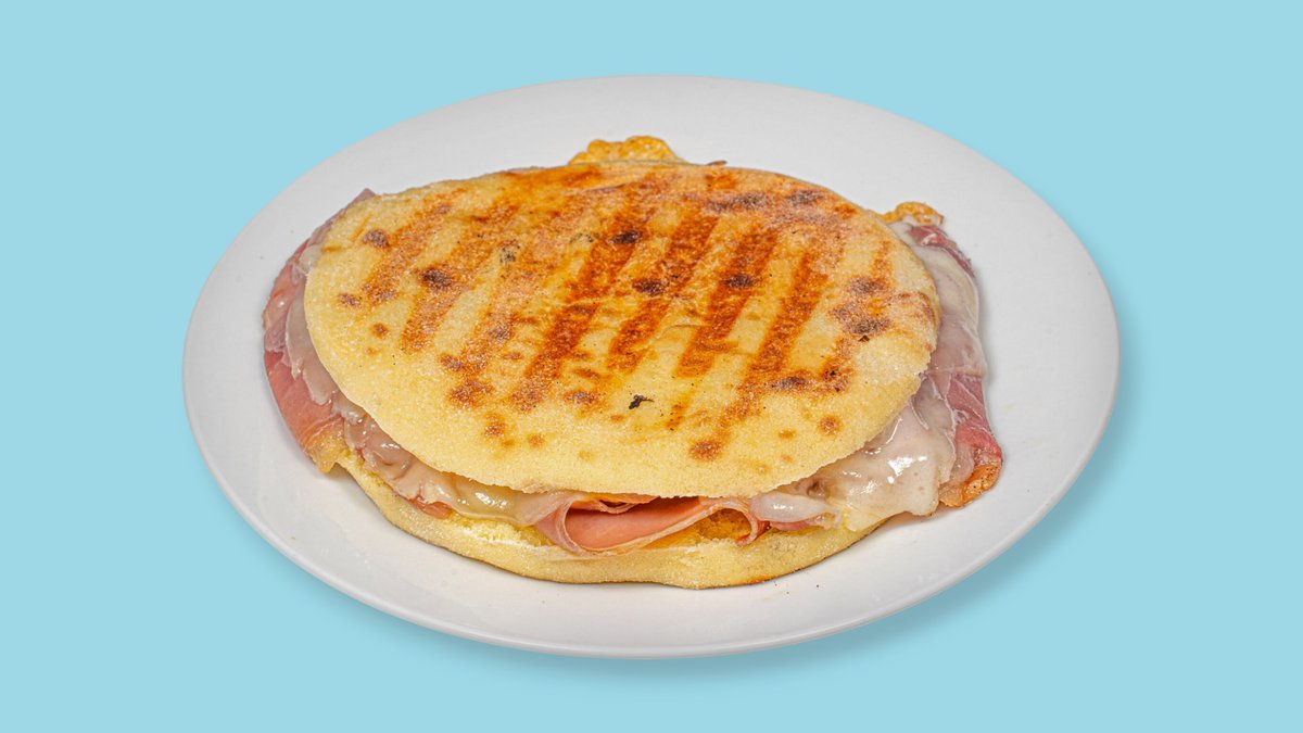 gefüllter Pizzateig mit Parmaschinken, Rucola und Mozzarella