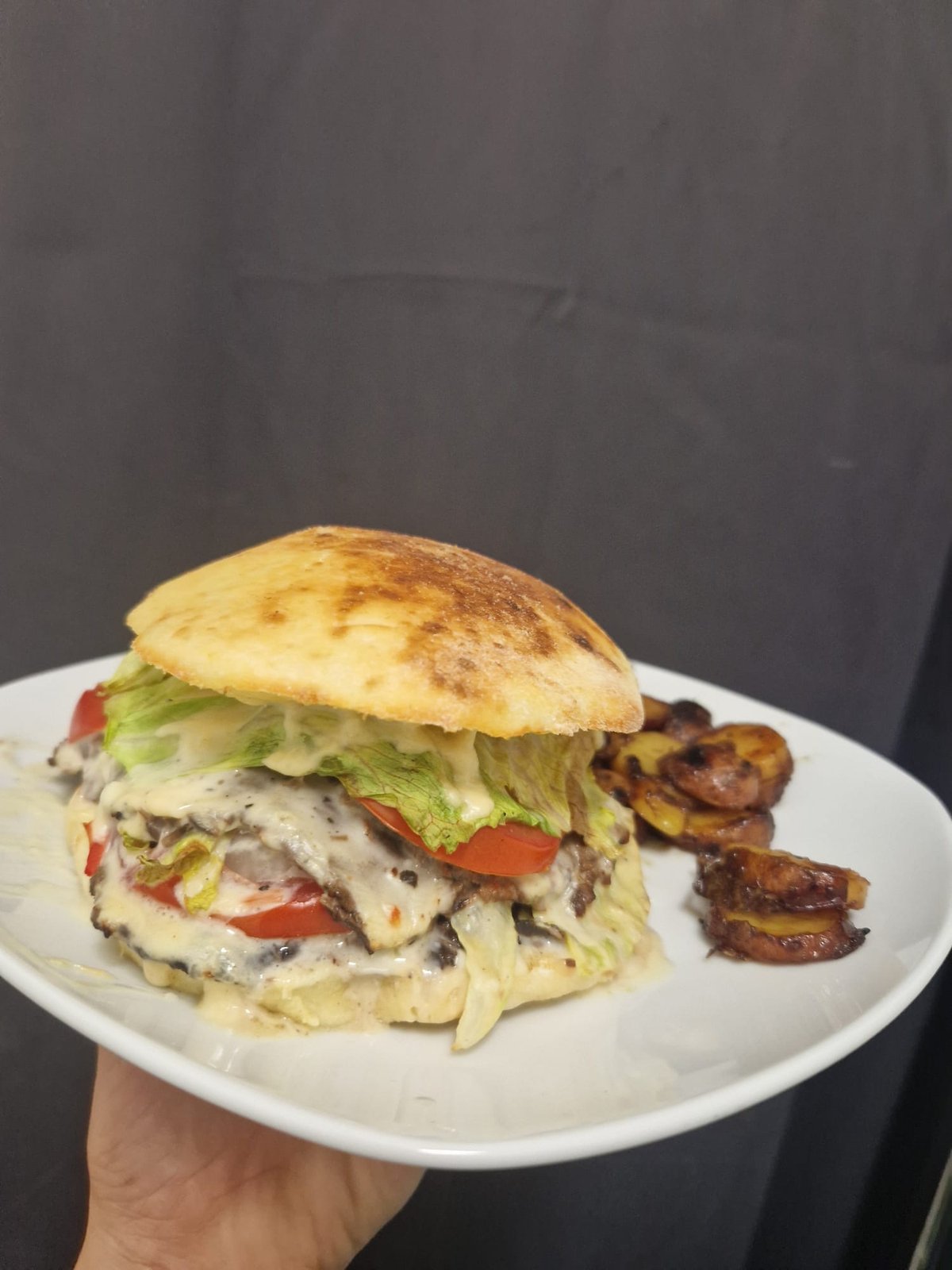 mit Spiegelei und hausgemachtem Kartoffelsalat