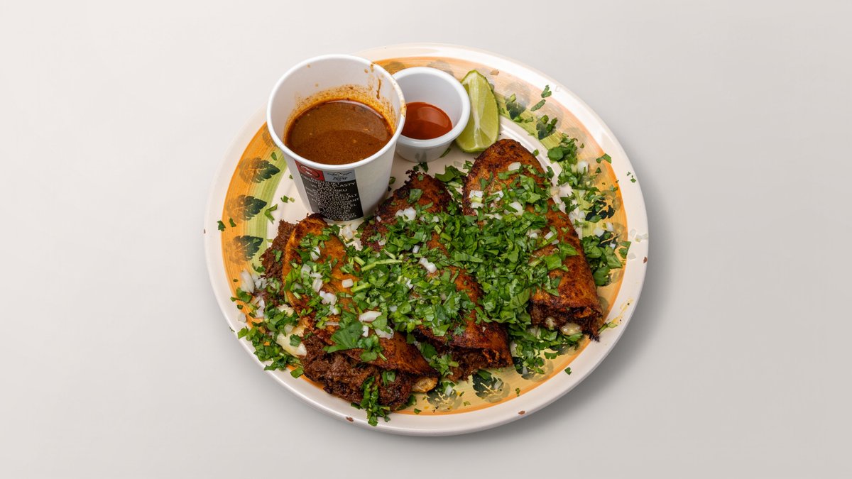 alle Tacos werden mit scharfer Soße und in einer Größe deiner Wahl serviert
