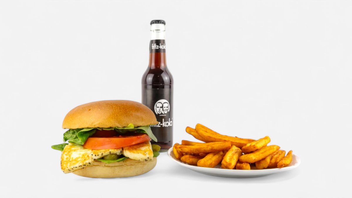 Alle Burger werden mit Brioche-Brötchen, Römersalat und Tomaten zubereitet („Veggie Halloumi Burger“ und „Vegan Plant Burger“ werden ohne Römersalat zubereitet)