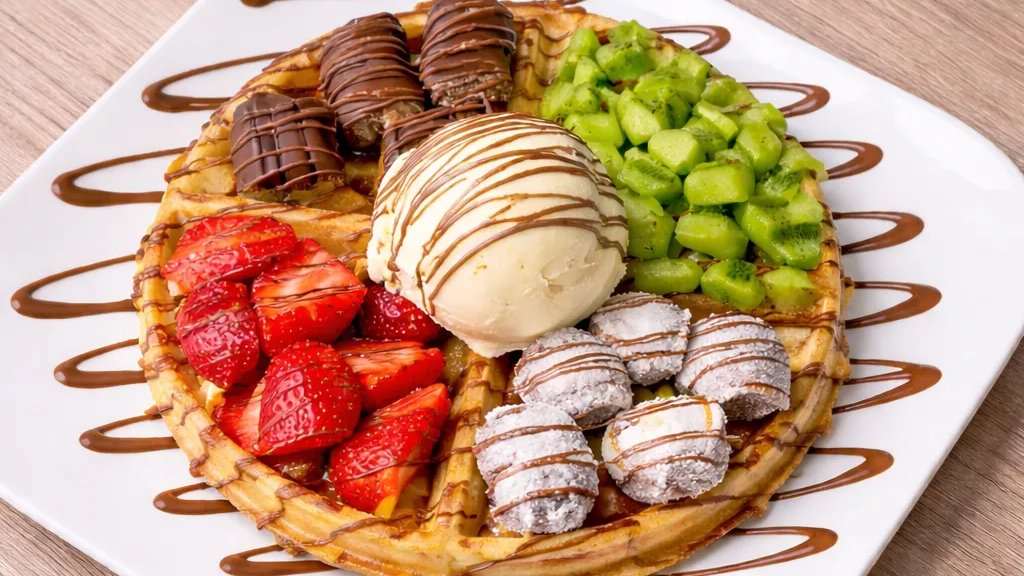 alle Waffeln werden mit Toppings nach Wahl zubereitet