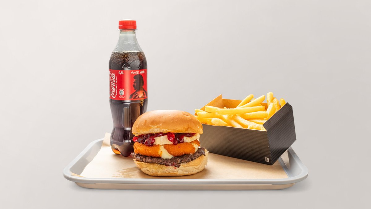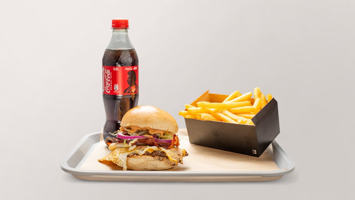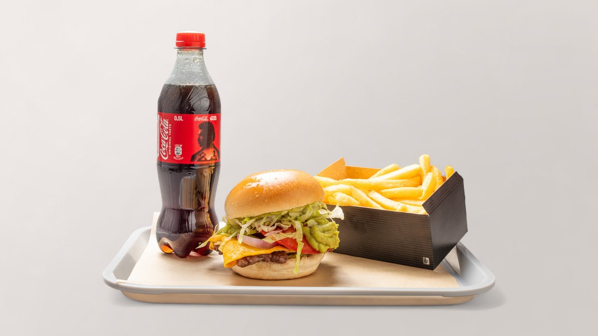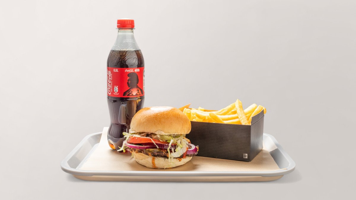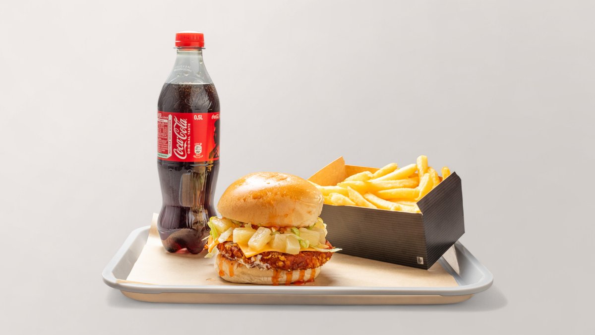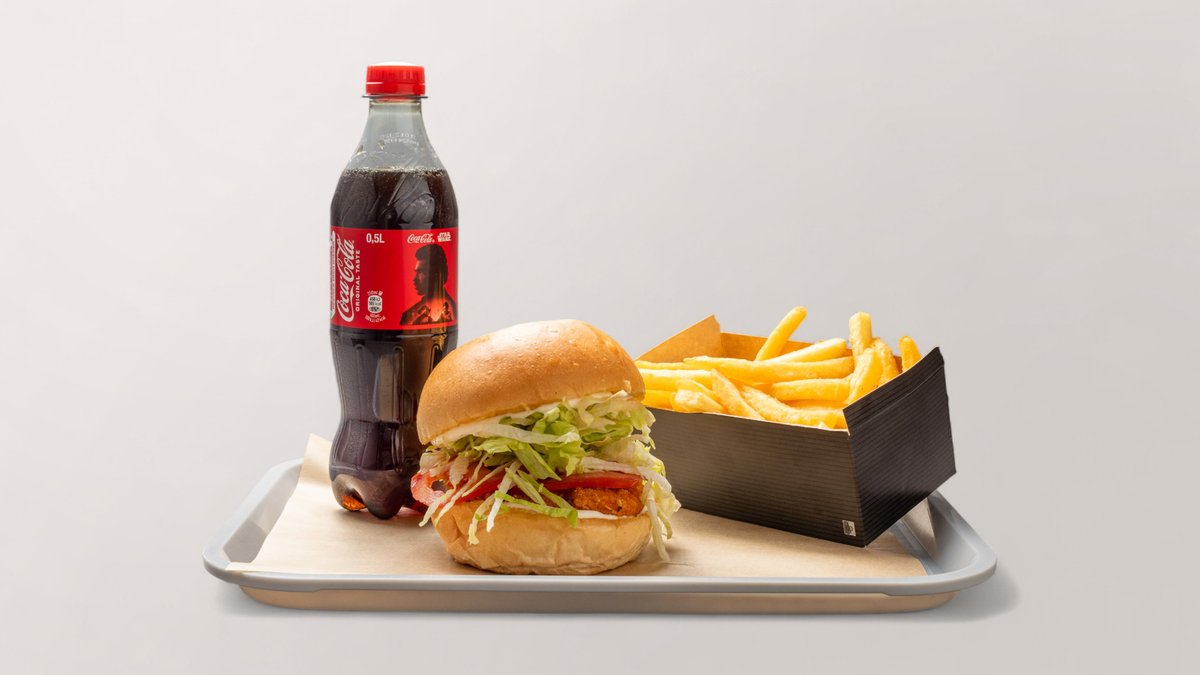 alle Menüs werden mit einem Burger, Pommes frites und einem Getränk 0,5 l deiner Wahl serviert