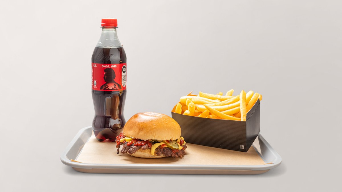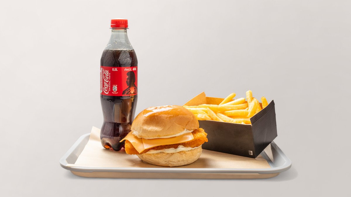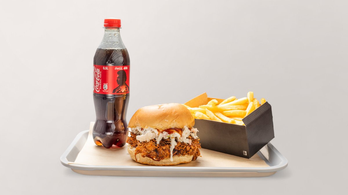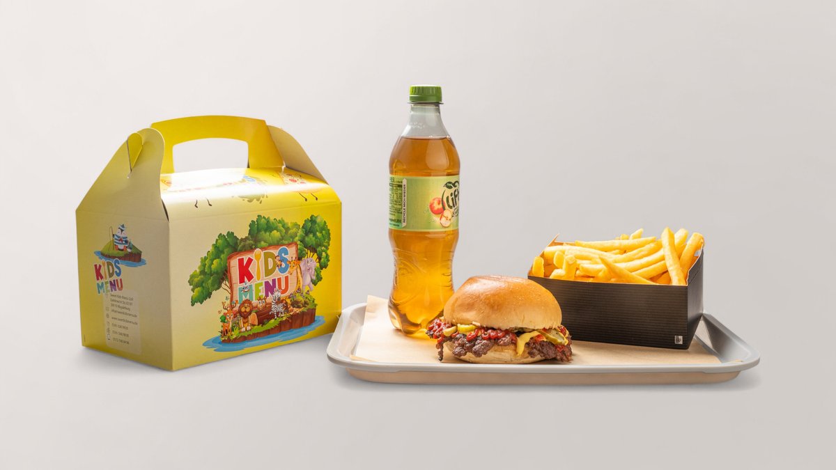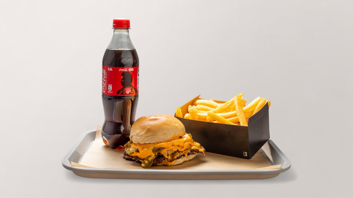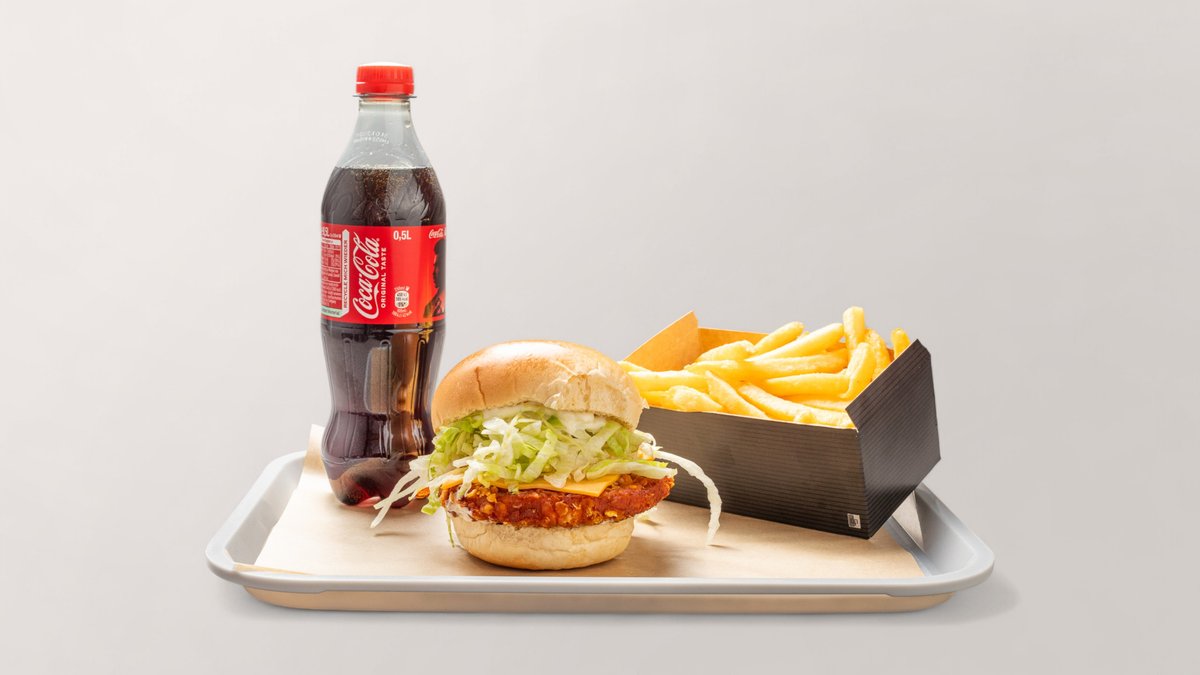alle Menüs werden mit einem Burger, Pommes frites und einem Getränk 0,5 l deiner Wahl serviert