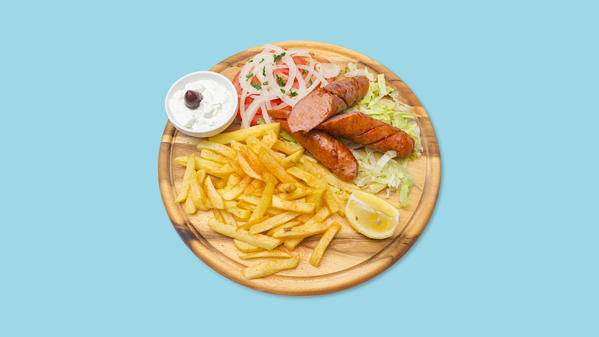 mit traditioneller griechischer, gegrillter Wurst vom Schwein