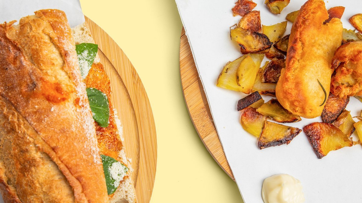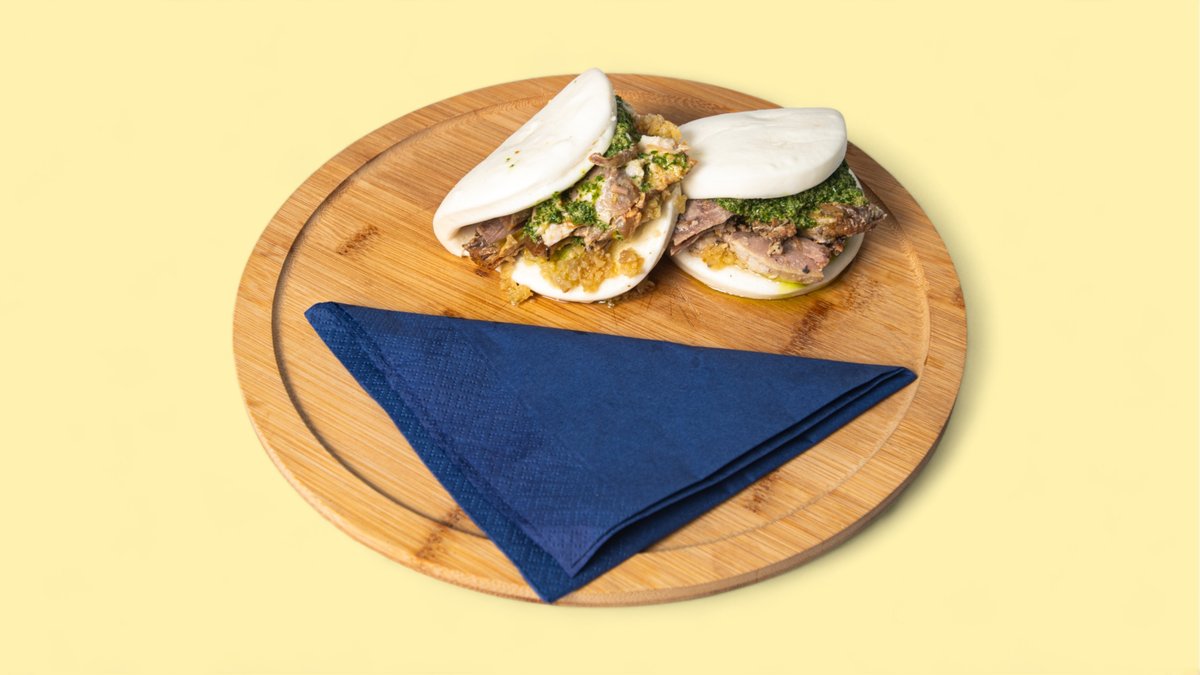 2 StĂĽck mit Porchetta, Kartoffeln und grĂĽner Salsa