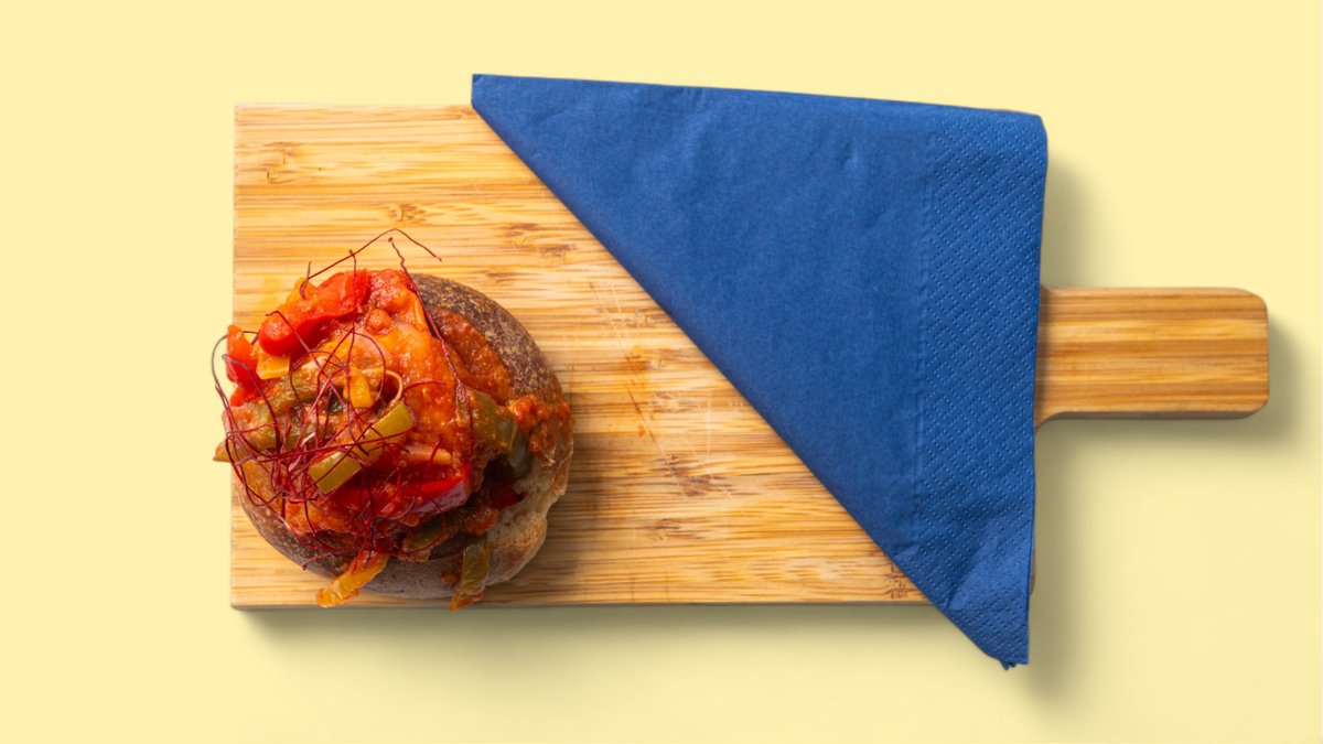 japanisch Sandwich-Brot mit Oktopus, Olivenpaste, Pak Choi und Burrata