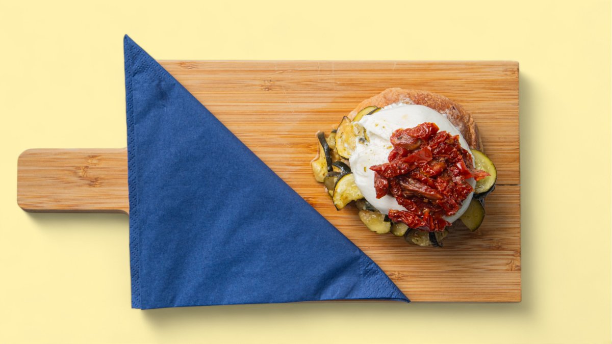 mit Zucchini, Stracciatella und getrockneten Tomaten