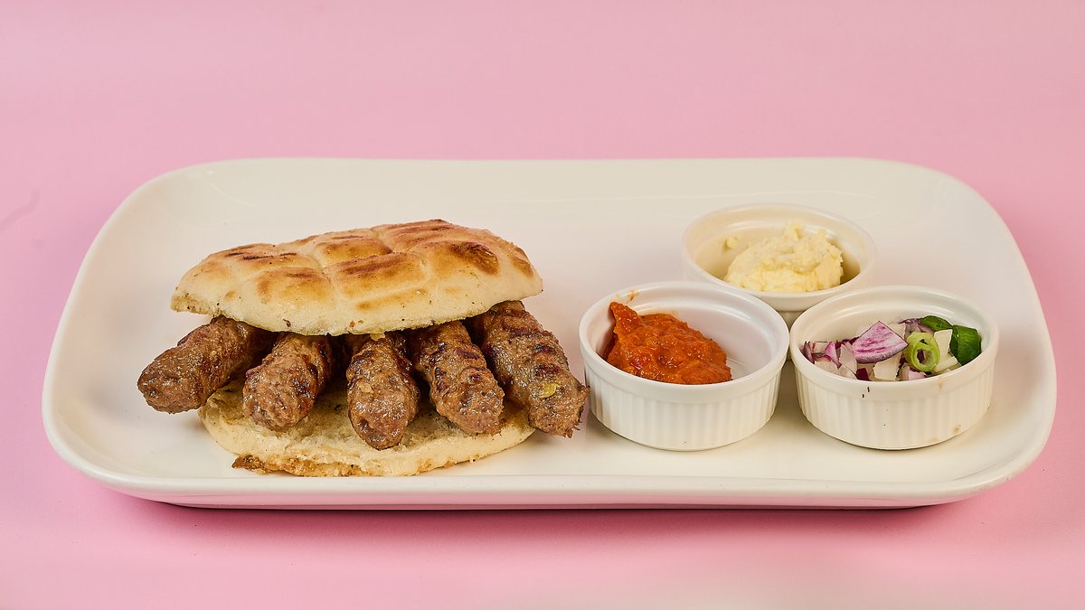 alle Gerichte werden mit Zwiebeln, Kajmak (Schmand), Ajvar (Paprikapaste) und Brot serviert