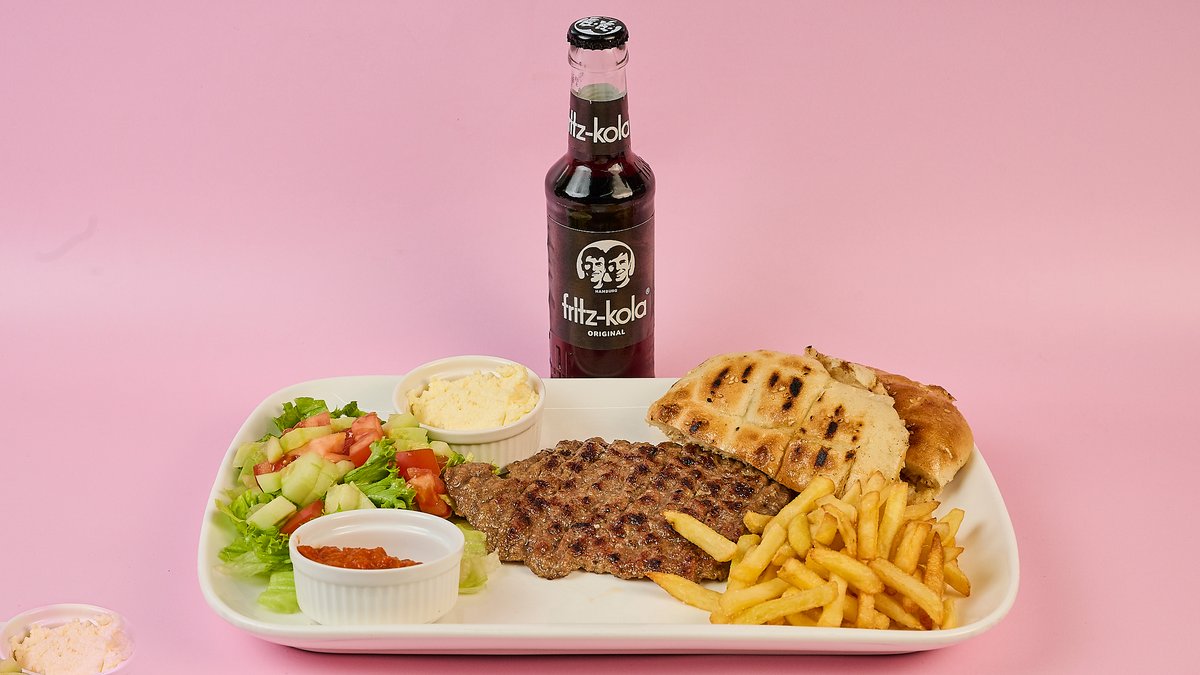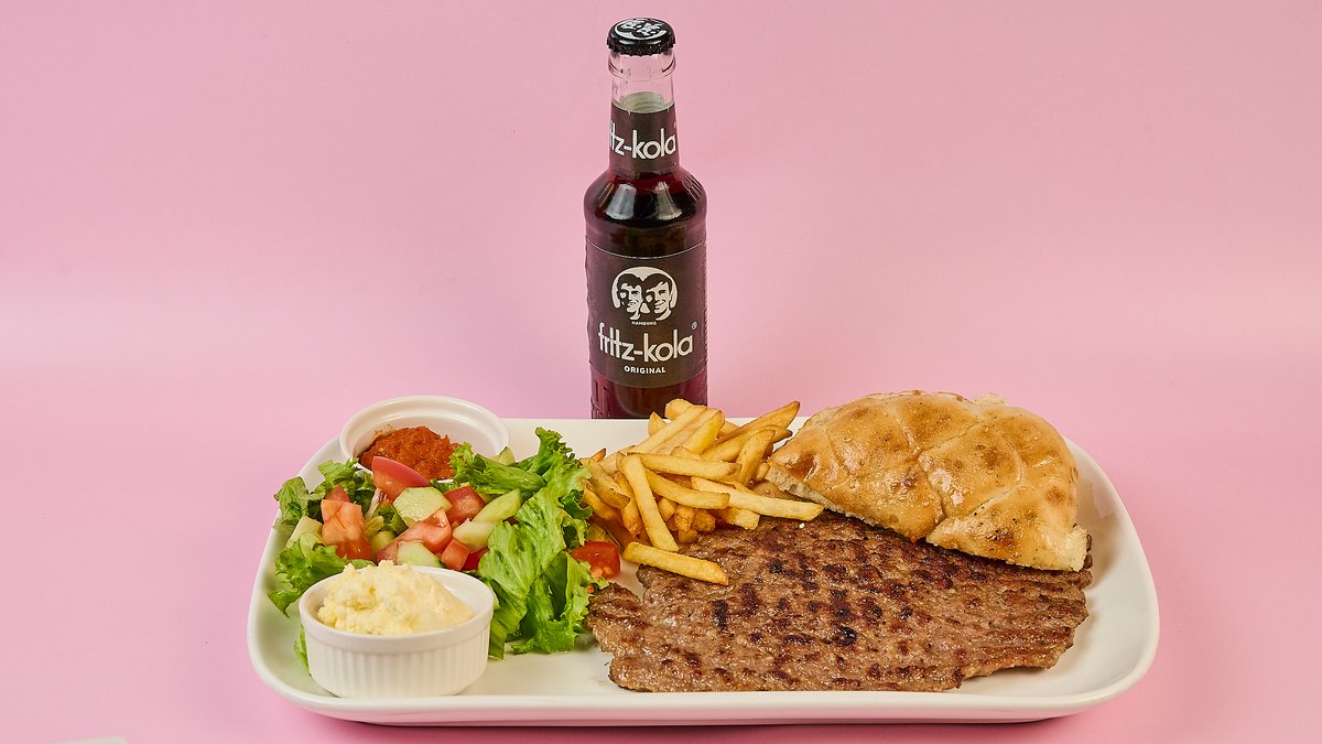 1x Pleskavica klein 125 g 1x Pommes frites 1x Salat 1x Getränk nach Wahl