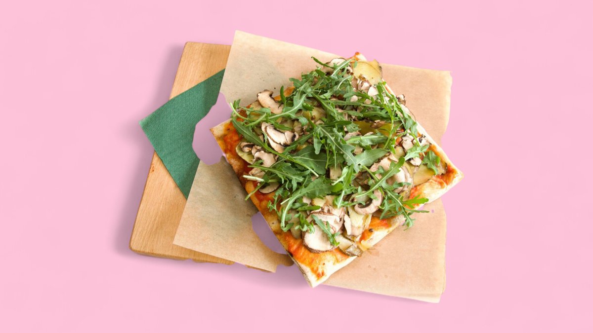 Tomato sauce, Roasted potatoes, Mushrooms, Rocket leaves & EVO oil