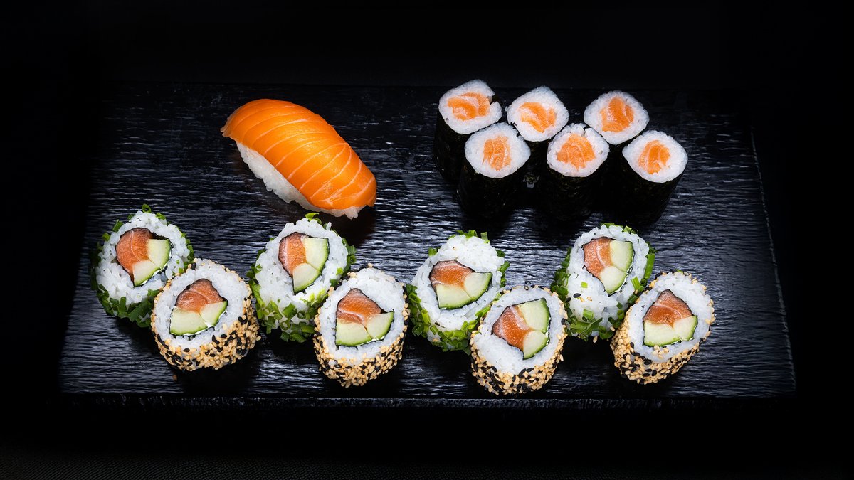 4x Inside-Out Sake Kappa-Sesam 4x Inside-Out Sake Kappa-Schnittlauch 6x Maki Sake 1x Nigiri Sake