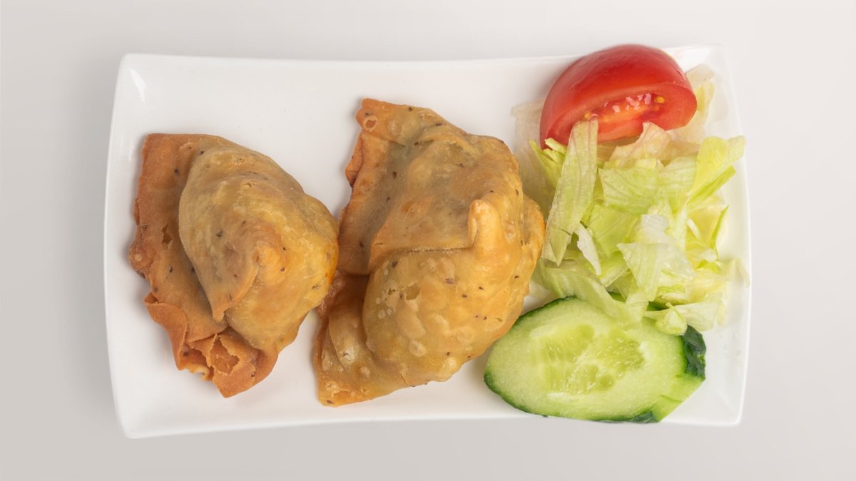 im Weizenteig frittierte Kartoffeln, gekocht mit scharfer Gewürzmischung