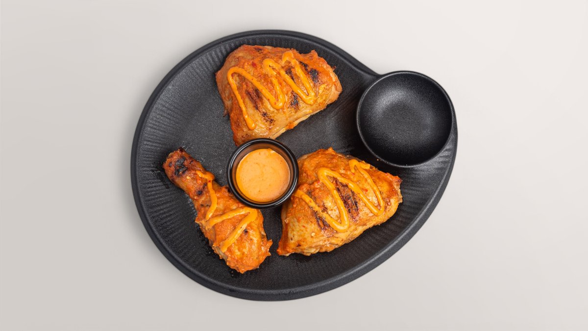 3 Stück, gegrillt marinierte Hähnchenteile mit aromatisierten Gewürzen, einer Marinade, einem Schärfegrad und in einer Zubereitungsart deiner Wahl