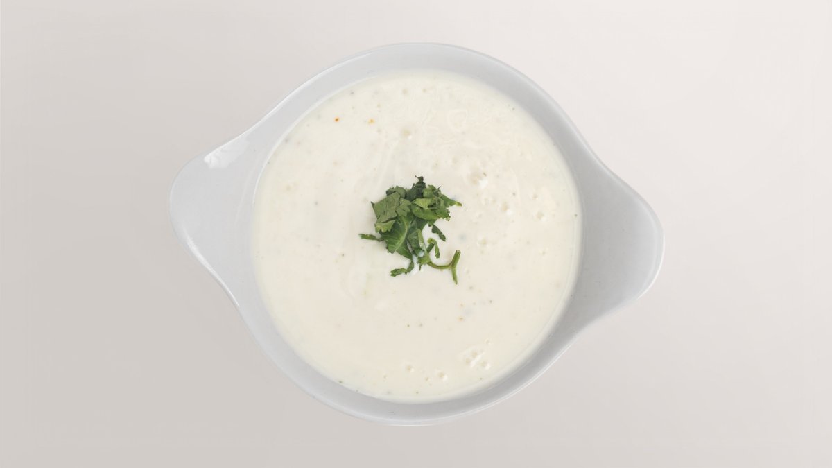 mit gemischtem Joghurt, schwarzem Pfeffer, Kreuzkümmel und Gurken