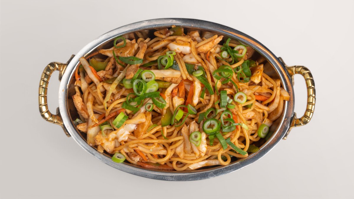 gebratene Spaghetti mit Hähnchen und Gemüse
