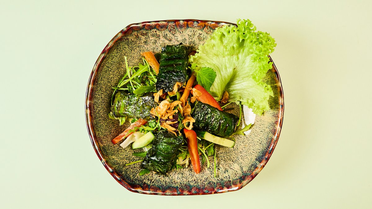 mit Seetang, Avocado, marinierter HĂĽhnerbrust und frischem Salat