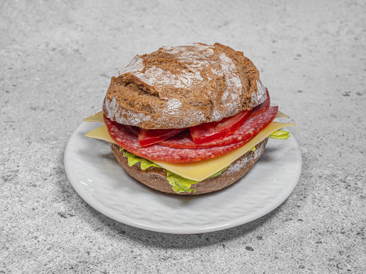 Belegtes Rustik-Malz-Roggen-Brötchen