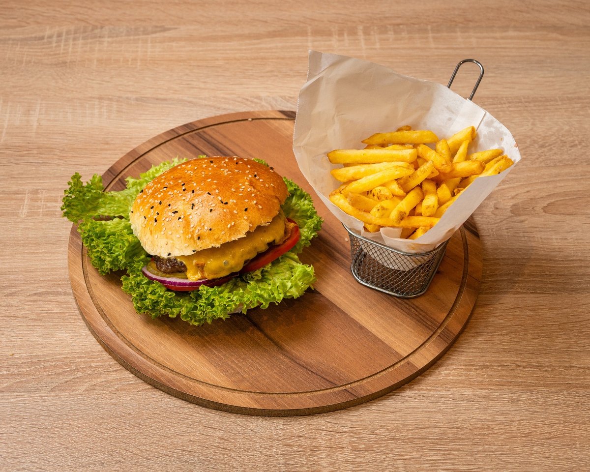1x Cheeseburger 1x Pommes frites 1x alkoholfreies Getränk 0,33 l deiner Wahl