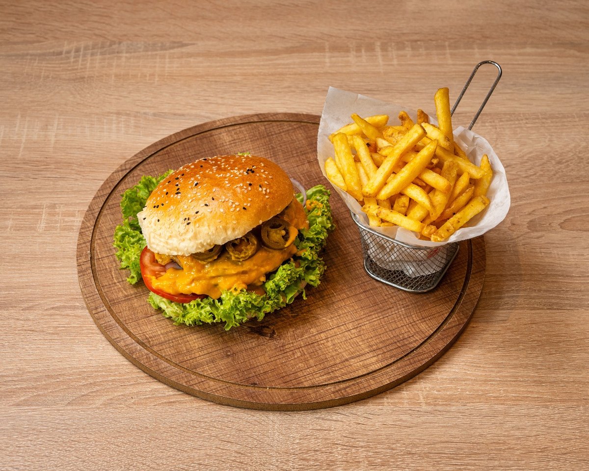 1x Tex Mex Burger 1x Pommes frites 1x alkoholfreies Getränk 0,33 l deiner Wahl