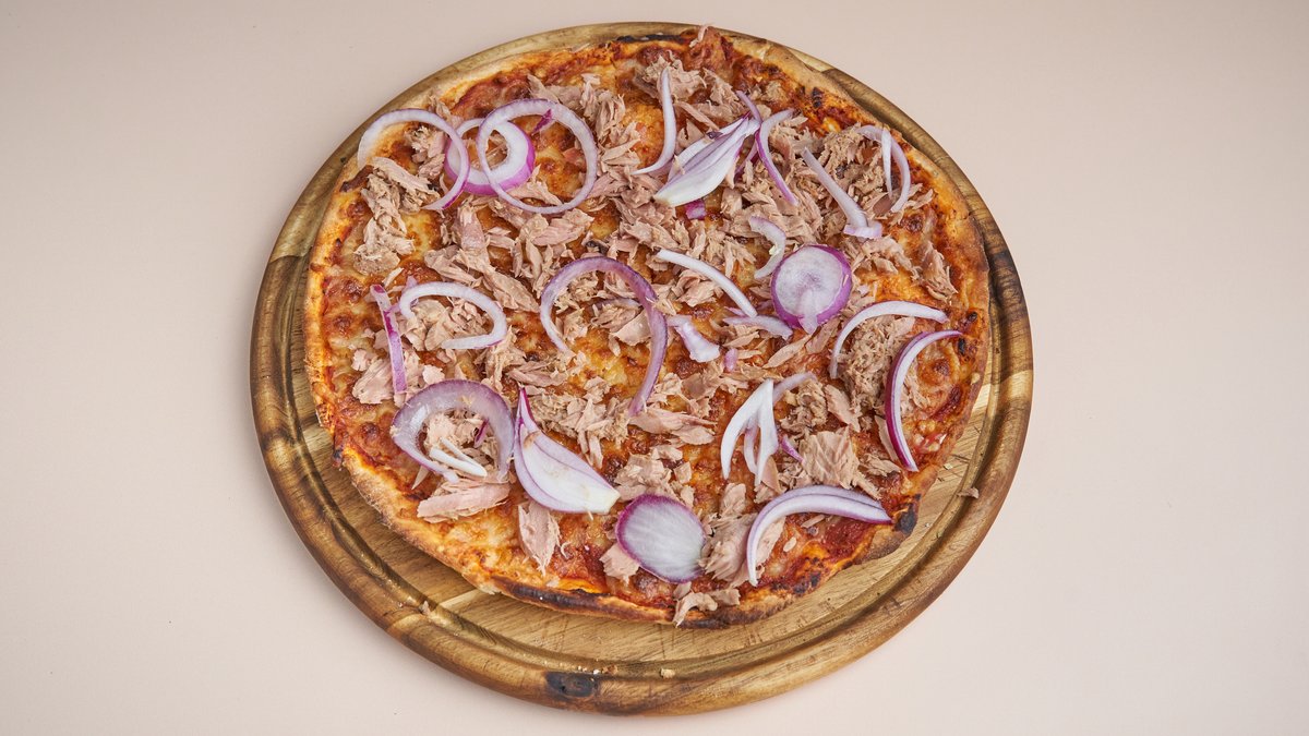 mit Rucola, Thunfisch, roten Zwiebeln und Parmesan