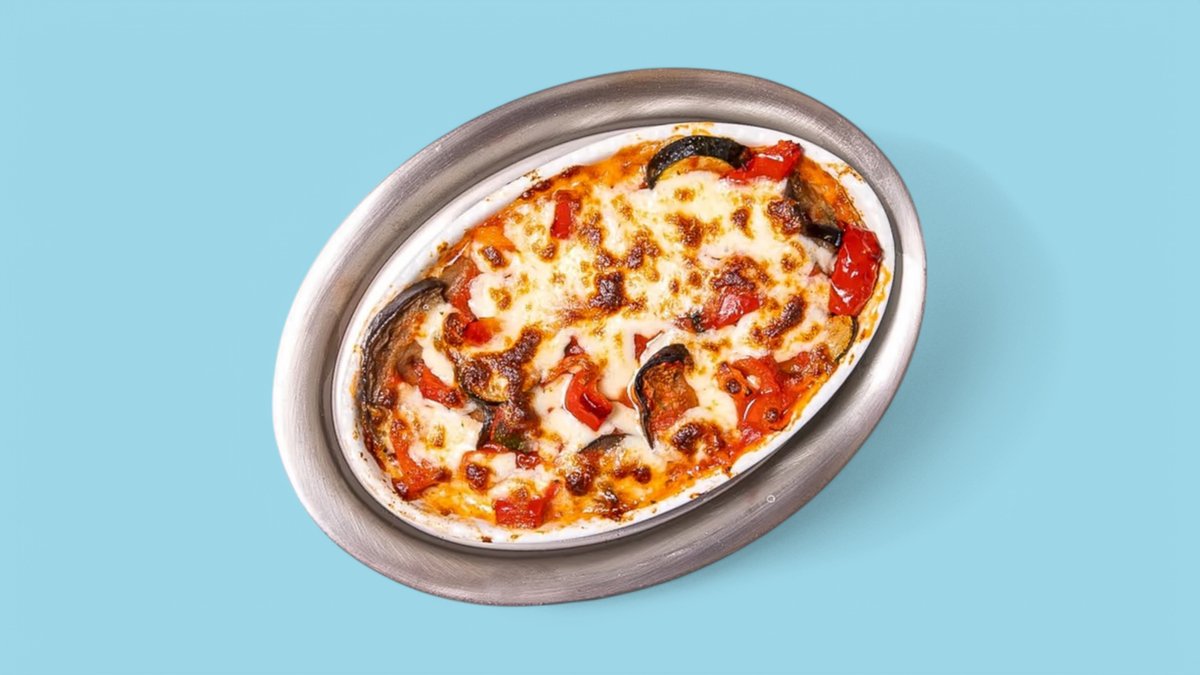 mit gegrillter Zucchini, Aubergine, Paprika, Chili und Knoblauch in Tomatensoße