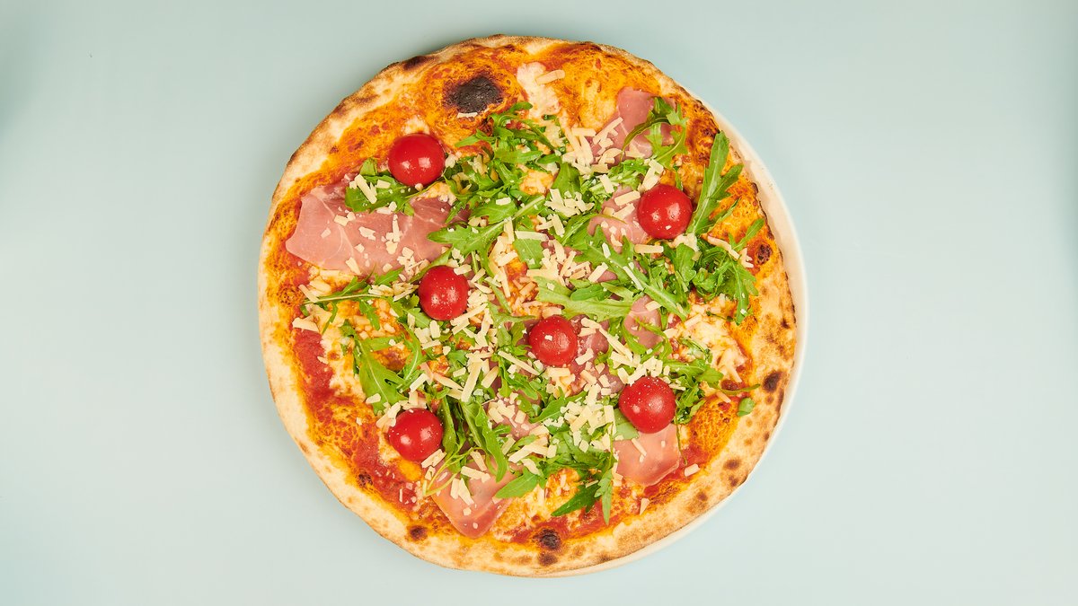 mit Parmaschinken, Kirschtomaten, Rucola und Parmesan