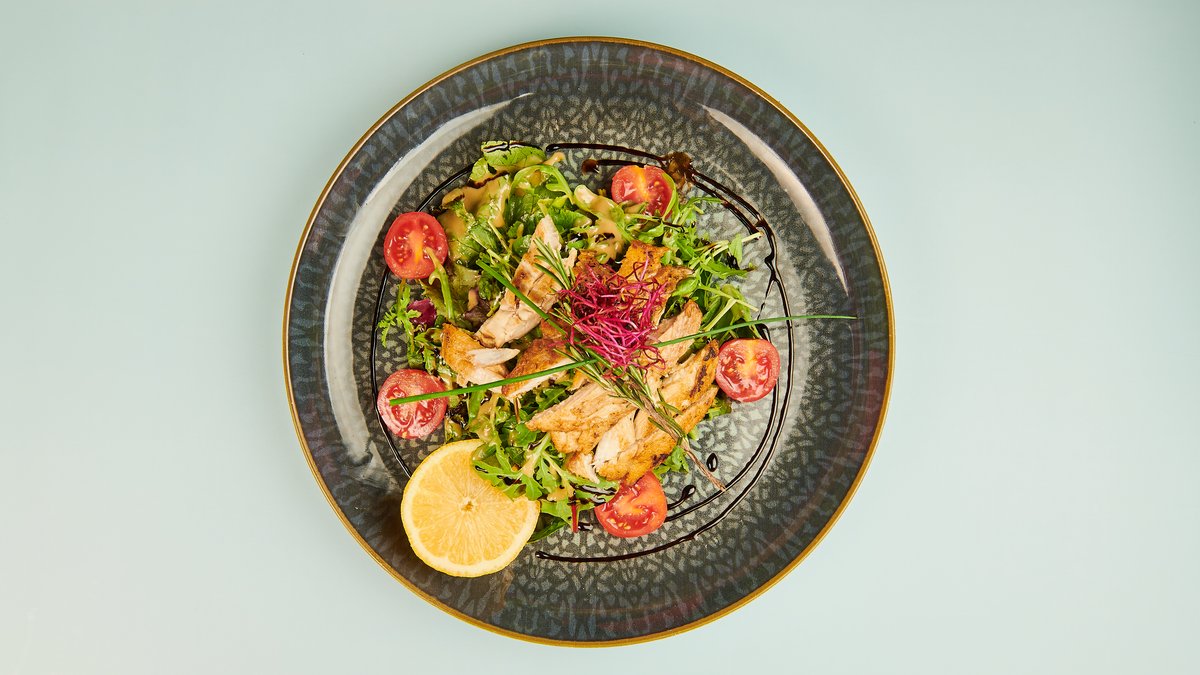 saisonale Blattsalate mit Hähnchenbruststreifen